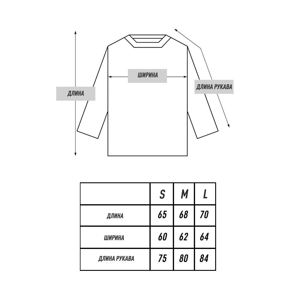При выборе размера ориентируйтесь на наши рекомендации. Лонгслив уже широкого кроя, поэтому нет необходимости выбирать позицию на размер больше.