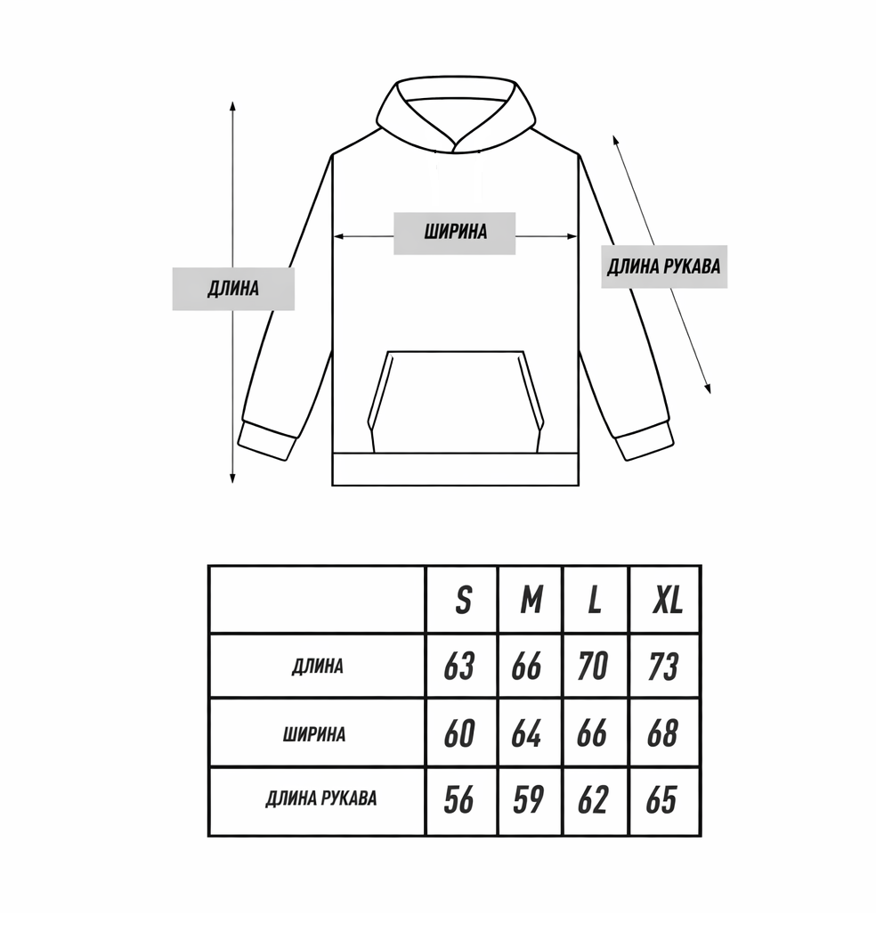 При выборе размера ориентируйтесь на наши рекомендации. Худи уже широкого кроя, поэтому нет необходимости выбирать позицию на размер больше.